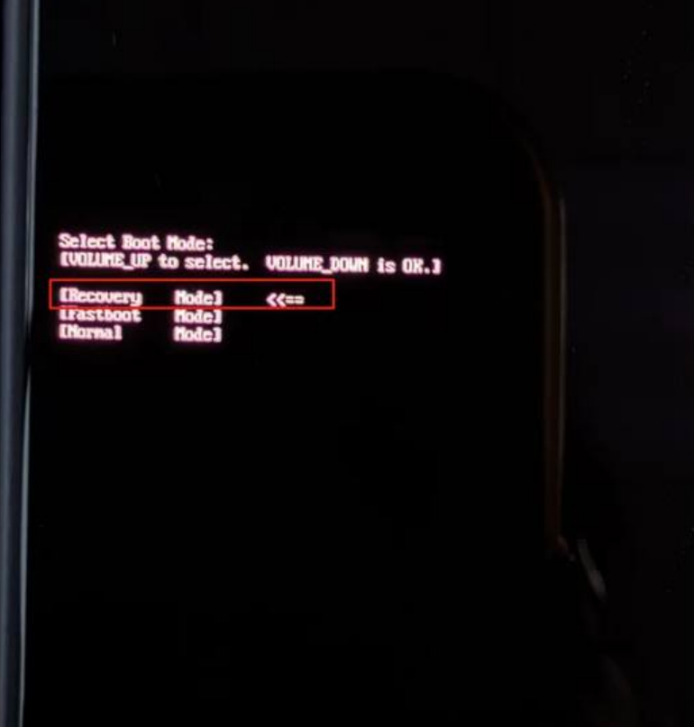 - 用音量键移动光标到“Recovery”