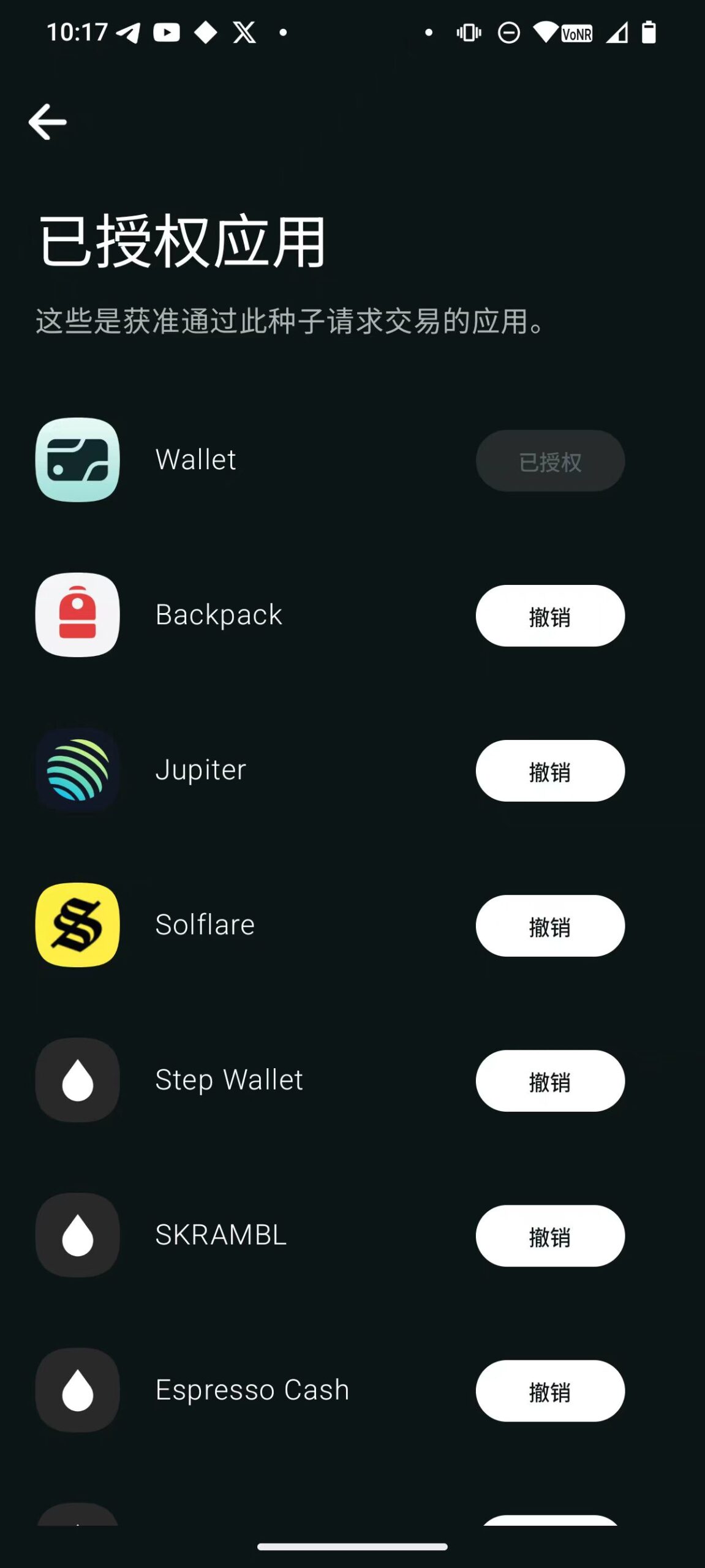 在这里面可以找到你去你钱包已经授权的所有应用,对应不放心的应用授权取消既可。