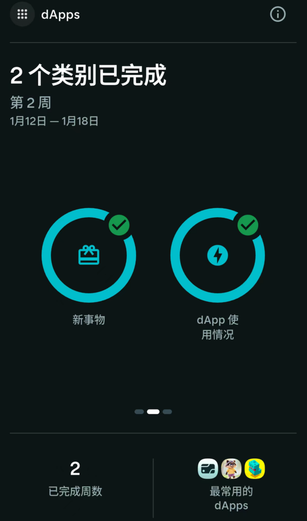 二环DApp使用情况,核心就是多用各种APP,用的久、用的不同,可以结合挂机玩法。