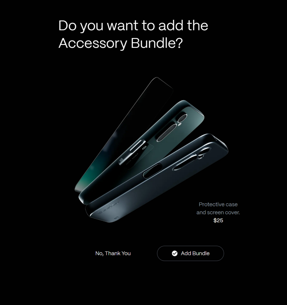 3⃣在配件页面你可以选择是否需要官方配件-25U(手机壳和贴膜,如不选,淘宝也有廉价平替版)