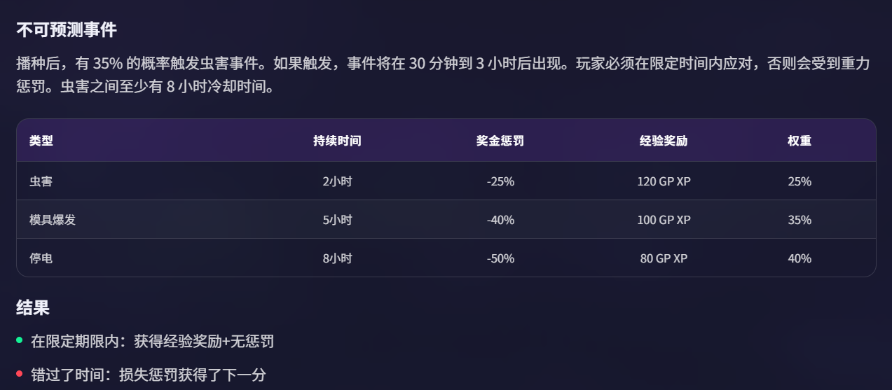 - 种子种下的前期有虫害发生的可能,需要在这个虫害发生期间及时清理,不然会导致绿币减产。