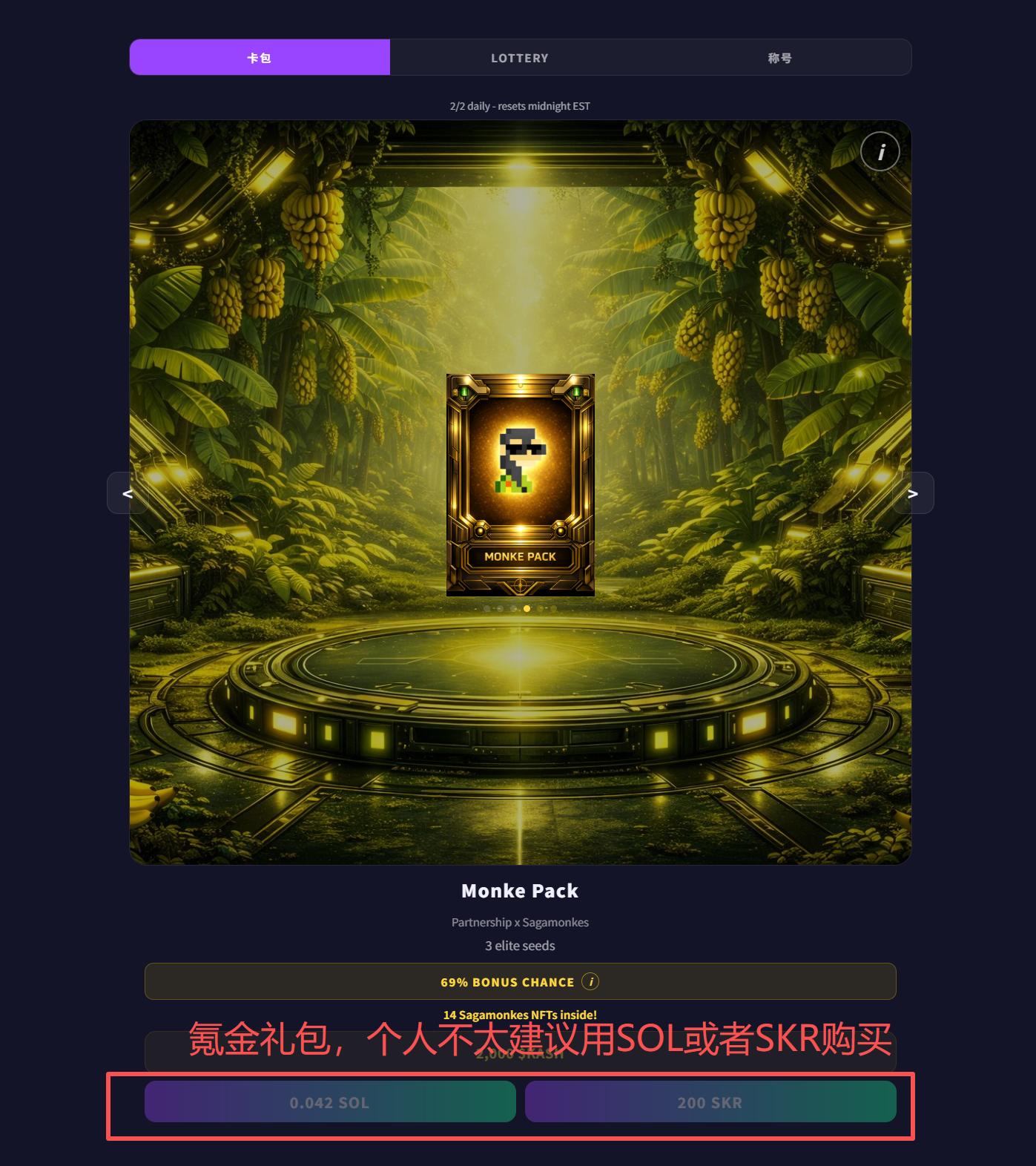 - 市场中后三个合作的种子包是这个游戏的氪金点,如果你金币够多,可以氪,但是如前面所说,不建议用SOL或SKR氪金,没必要,徒增风险。