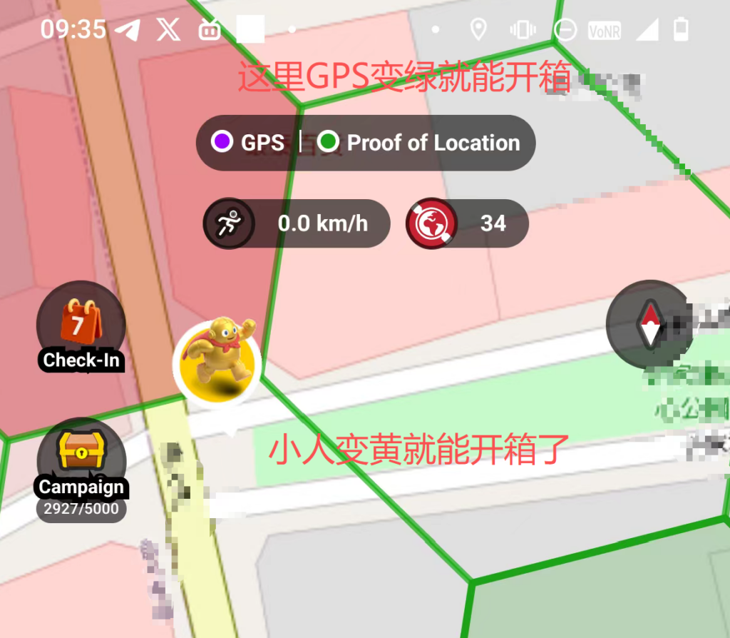 10.箱子出现的位置一般在你每天第一次打开APP所处位置的附近,离这个位置稍远一点,就不会出现箱子了,结合上一条,可以每天先走到一个开阔的地方再打开APP,在这里签到,然后集中在这一块一片地方附近开完一天的箱子,且能够打开箱子的概率高(GPS容易变绿)。
